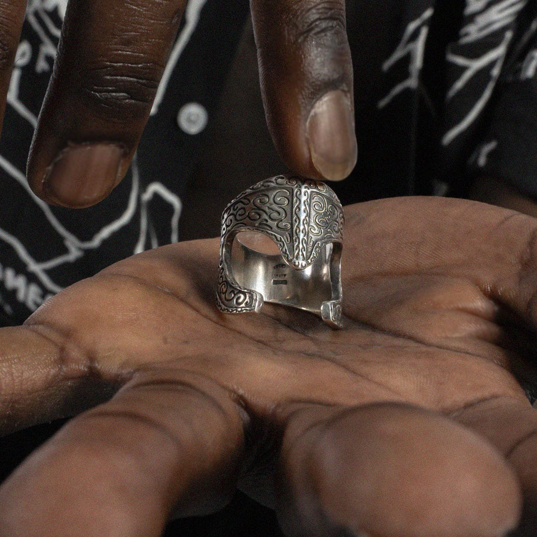 The shape of the ring is inspired by the Elven helmets as depicted by Tolkien.